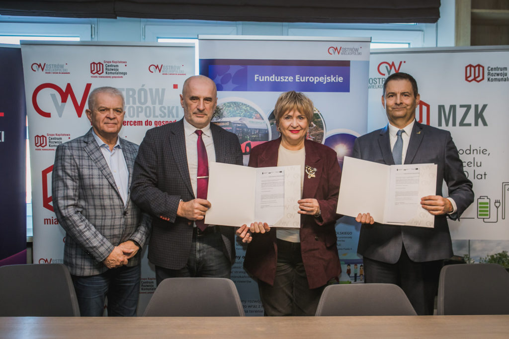 W dniu dzisiejszym tj. 28.11.2025 r. w obecności Pani Prezydent Beaty Klimek podpisana została umowa między Miejskim Zakładem Komunikacji S.A. w Ostrowie Wielkopolskim a SOLARIS BUS & COACH z Bolechowa na dostawę czterech autobusów elektrycznych wraz z dedykowanym systemem ładowania. Zakup autobusów jest finansowany ze środków własnych Miejskiego Zakładu Komunikacji S.A. oraz Funduszy Europejskich dla Wielkopolski